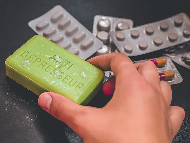 Le savon solide a un avantage instantané, il ralentit naturellement le mouvement. Tu dois le prendre en main, le sentir, le faire mousser, tu dois te masser… ça ralentit ton rythme et ça favorise le retour au présent.